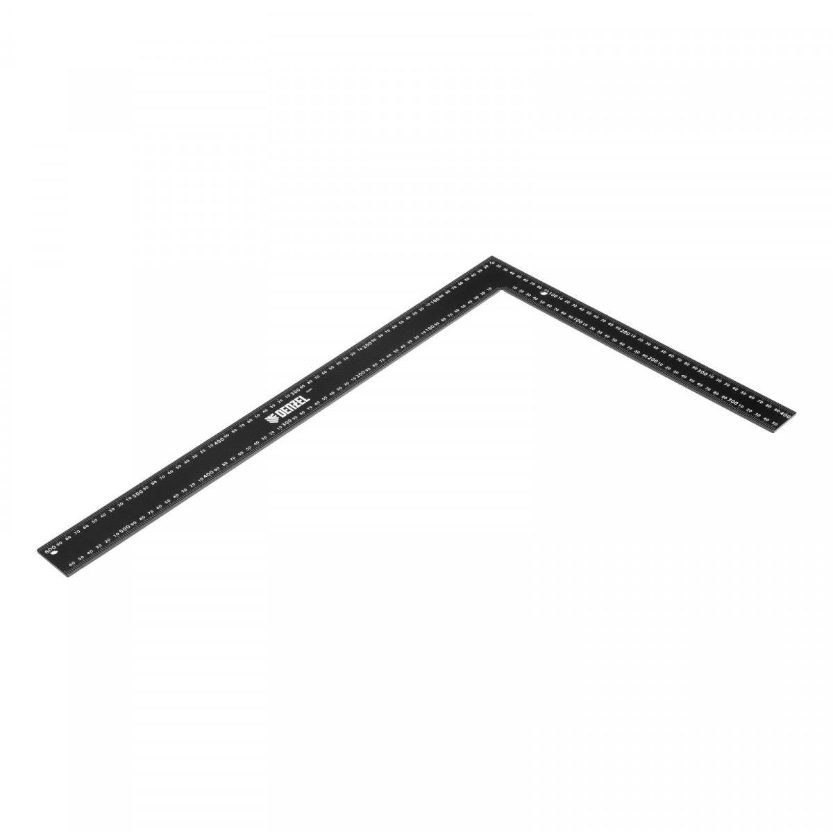 Лазерная гравировка на угольнике Denzel обеспечивает долговечность разметки.