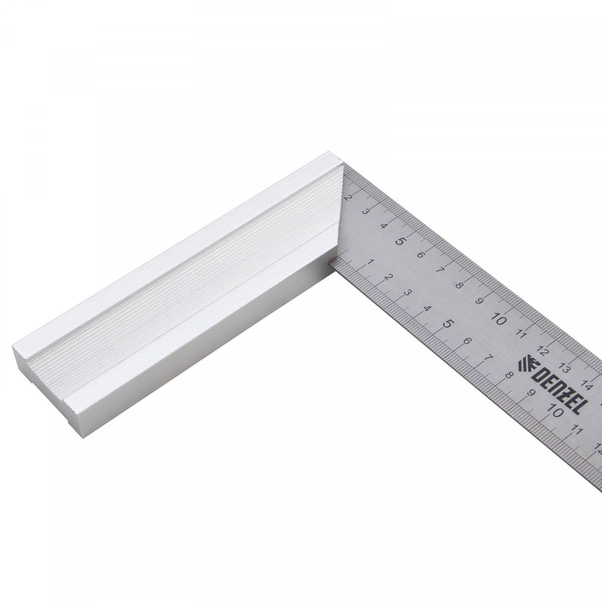 Угольник стальной 300 мм, нержавеющая сталь, градуировка, алюминиевое основание Denzel