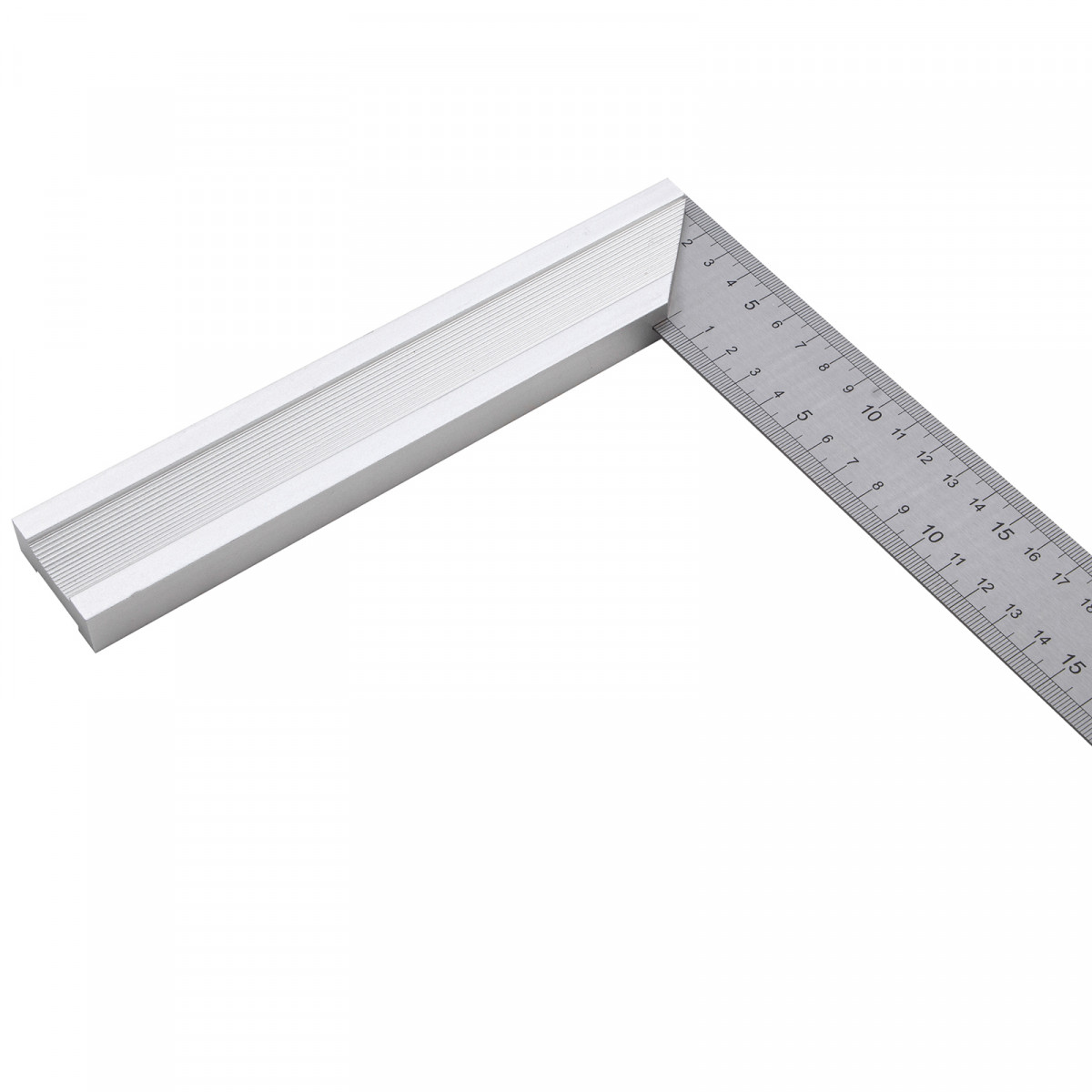 Стальной угольник Denzel 32398 длиной 400 мм, с градуировкой, алюминиевым основанием и полотном из нержавеющей стали, используется для построения и контроля углов. Будет полезен для выполнения столярных и строительных работ.