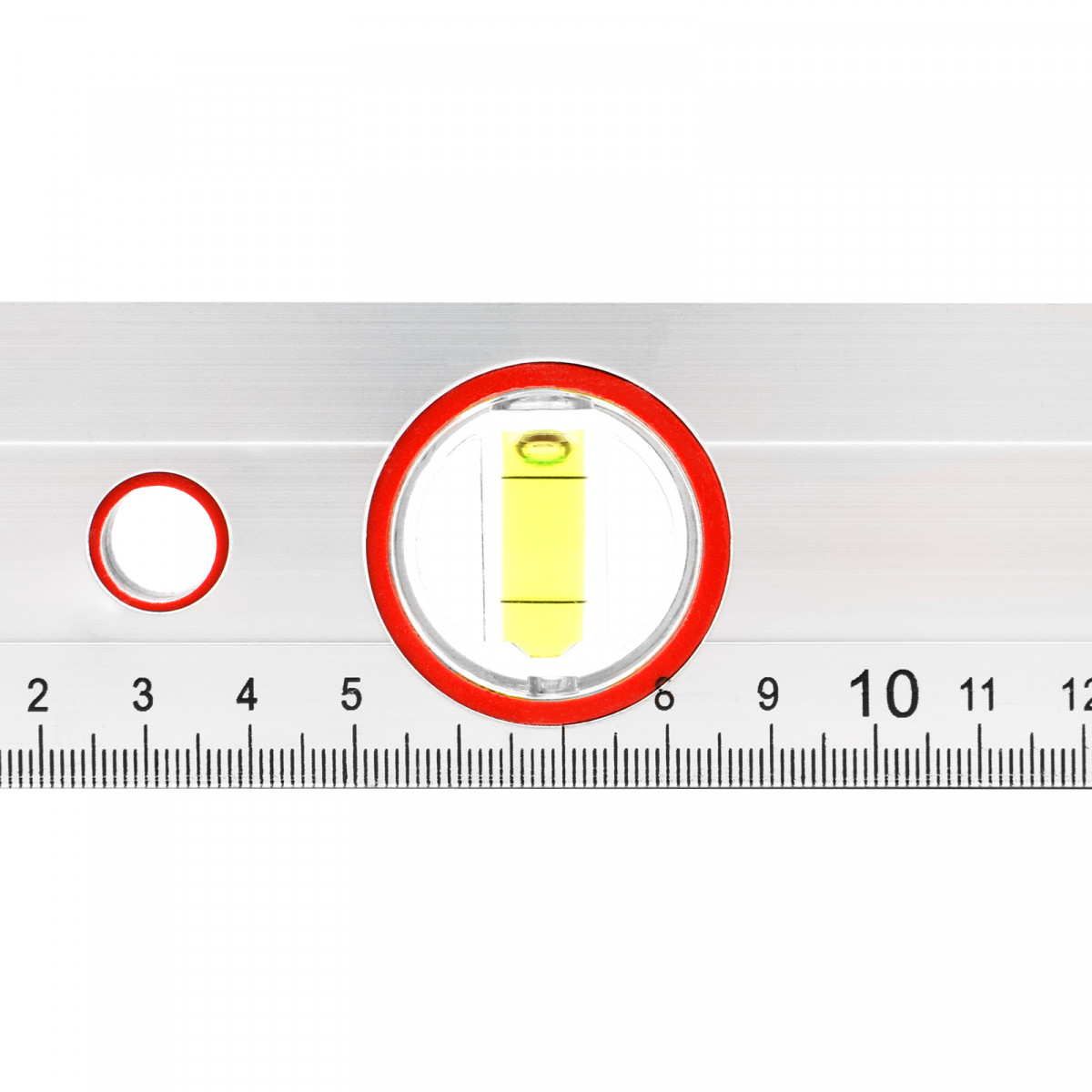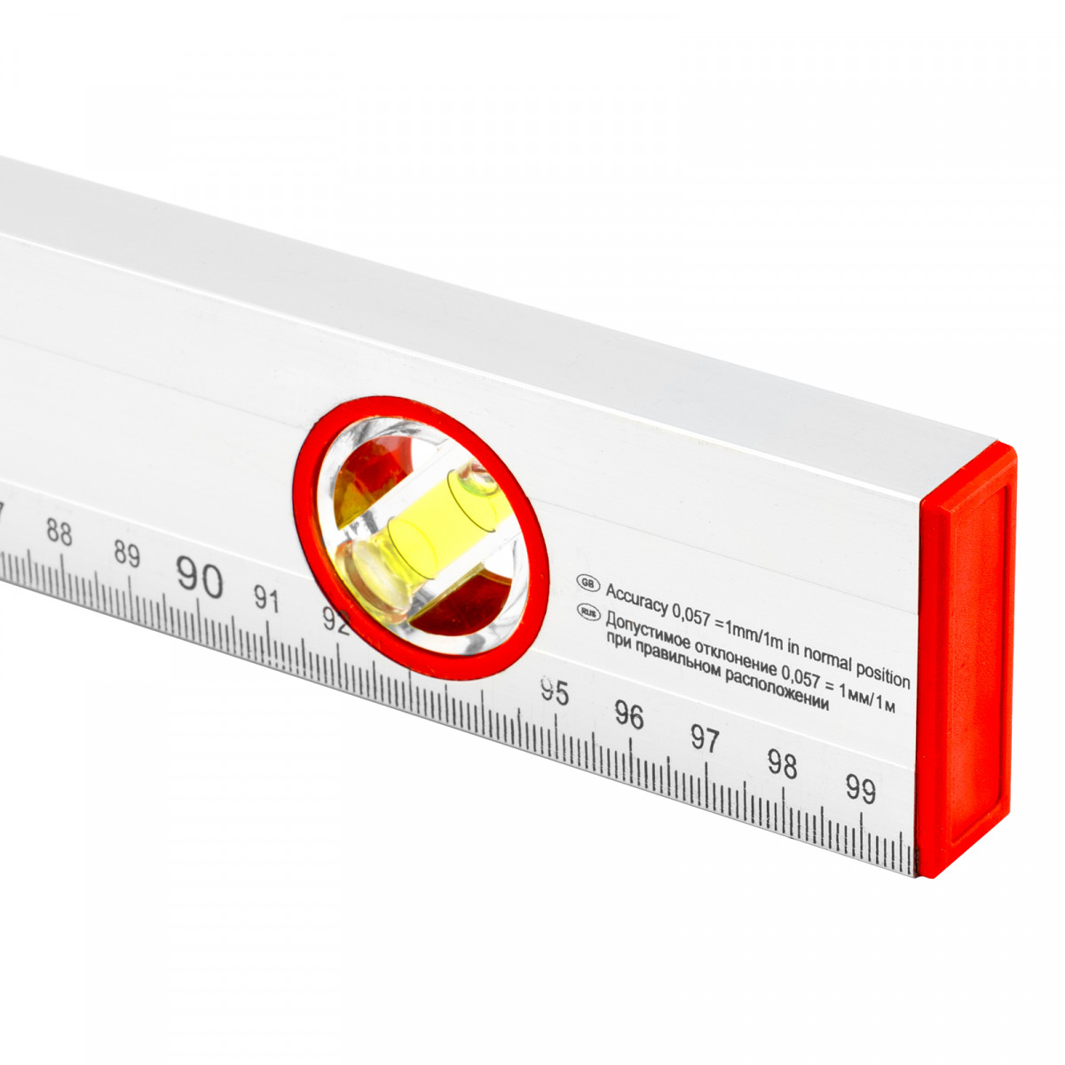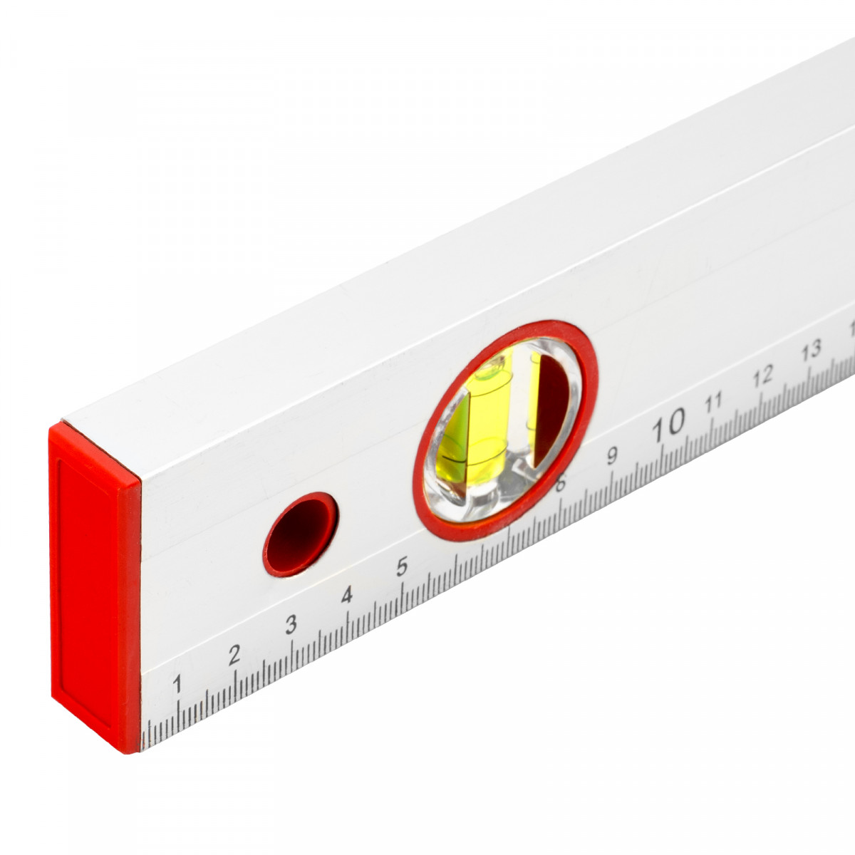 Алюминиевый уровень Sparta 331295 длиной 1000 мм, с 3 глазками и линейкой, используется на строительной площадке и во время ремонта. Повышает точность выполнения облицовочных, отделочных и других работ, позволяя проверить отклонения по горизонтали и вертикали, измерить угол наклона, выровнять поверхности и предметы.