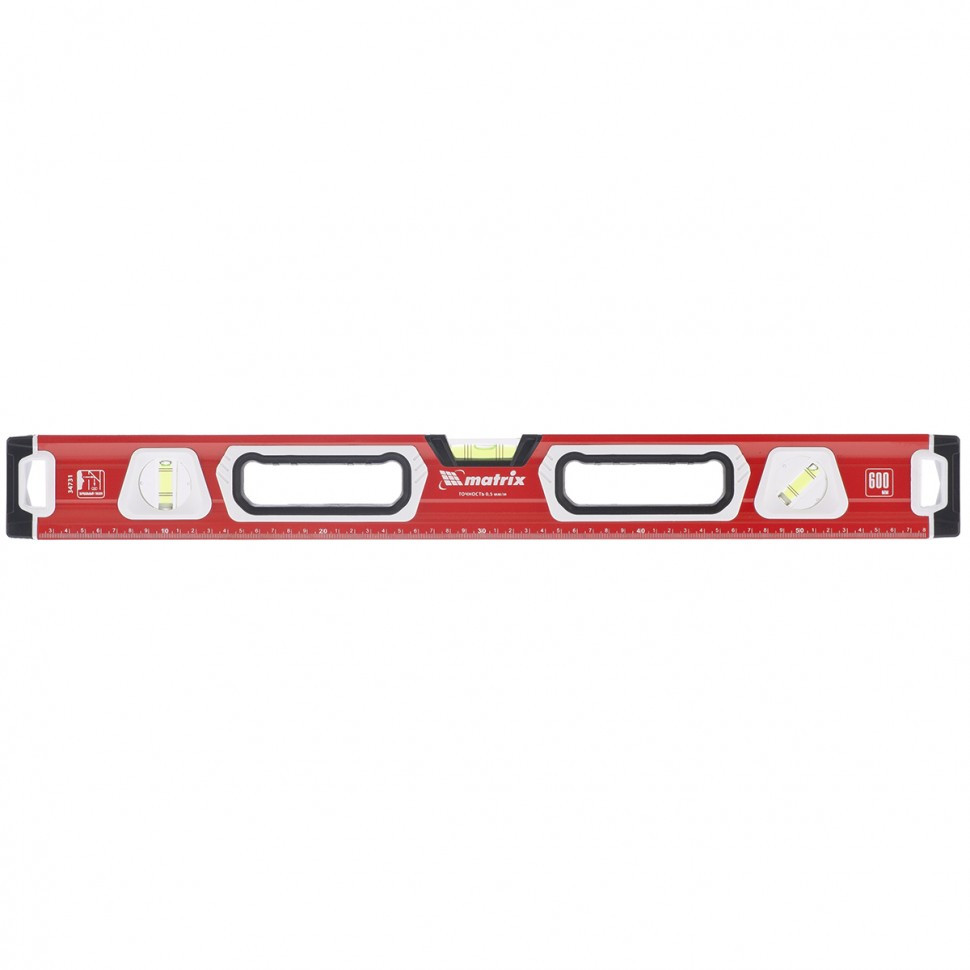 Уровень алюминиевый фрезерованный Matrix 34735 длиной 1500 мм, с магнитной полосой и 2-компонентными рукоятками, 3 глазками и 1 зеркальным отражателем, — измерительный инструмент для контроля отклонений поверхностей от горизонтали, вертикали и угла 45°. Используется для выполнения работ, требующих высокой точности.