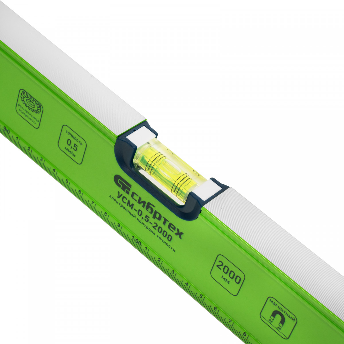 Уровень алюминиевый УСМ-0,5-2000, фрезерованный, 3 глазка, магнитный, рукоятки, 2000 мм Сибртех