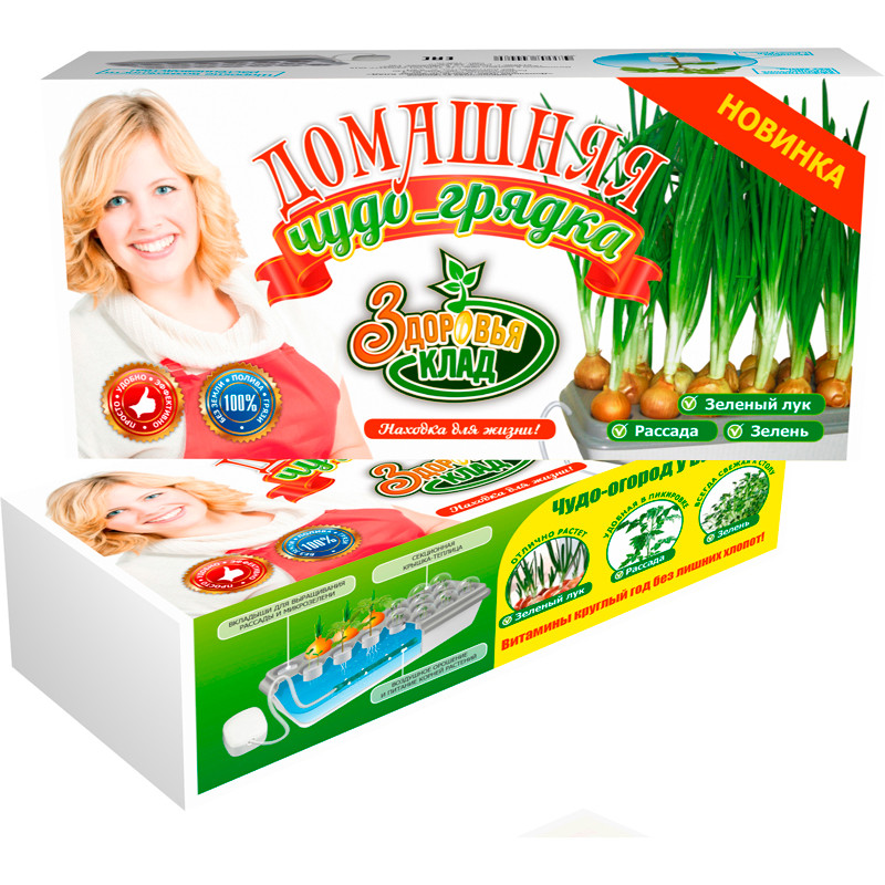 Домашняя чудо-грядка «Здоровья клад» - это универсальный гидропонная установка для выращивания дома полезного зеленого лука/ вкусной свежей зелени/ рассады для последующей высадки на грядку.