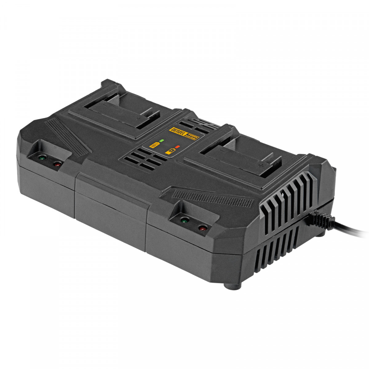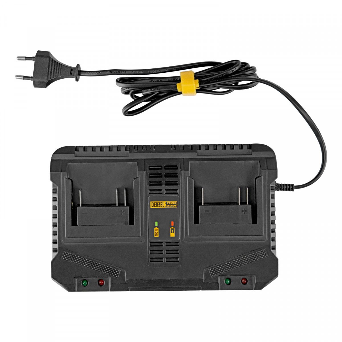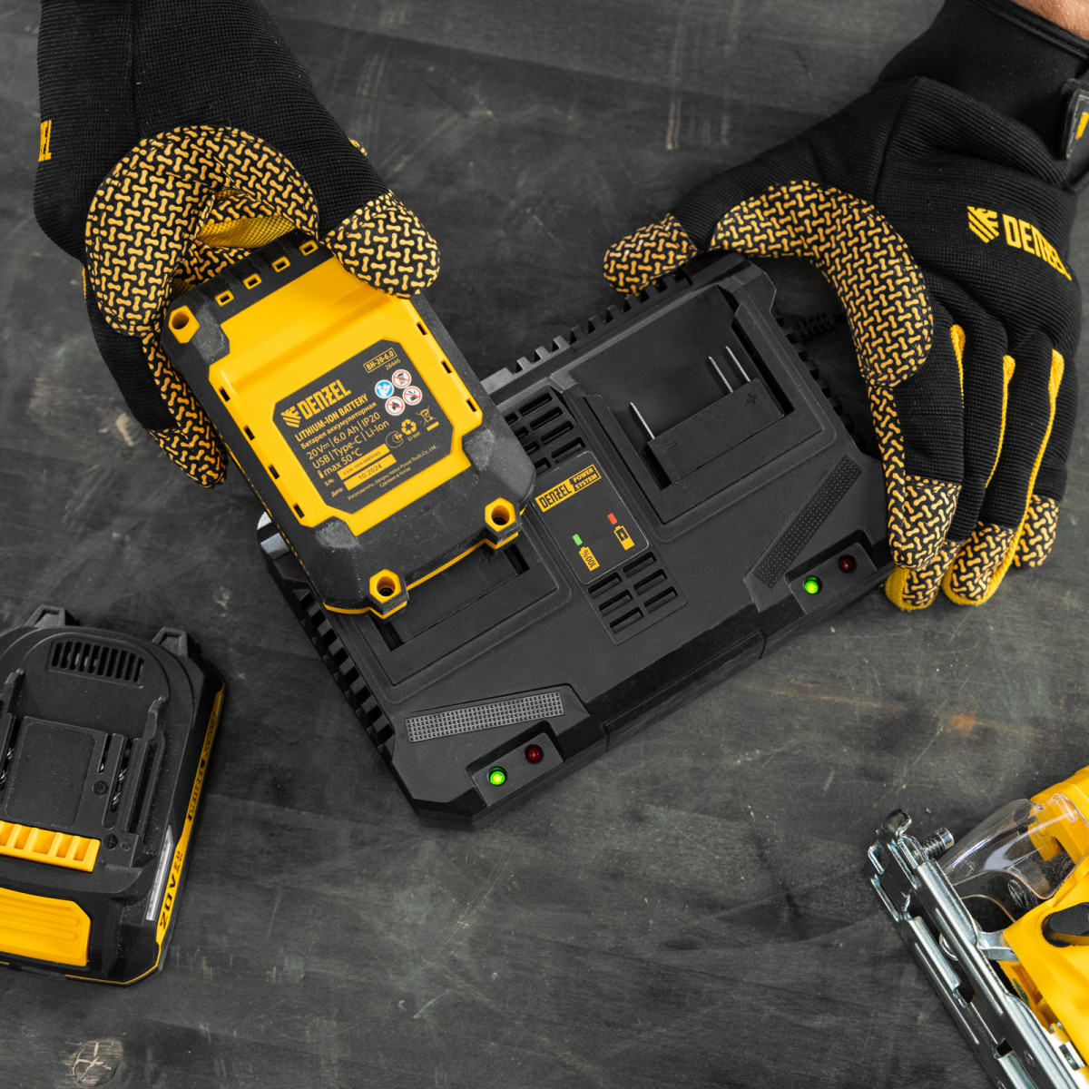 Двухпортовое зарядное устройство Denzel BCH-20-4.0x2 28458 предназначено для одновременной зарядки двух аккумуляторов единой платформы Denzel Power System 20 V. Обеспечивает ток заряда 4 A, совместимо с аккумуляторами Denzel 28442, 28444 и 28446.