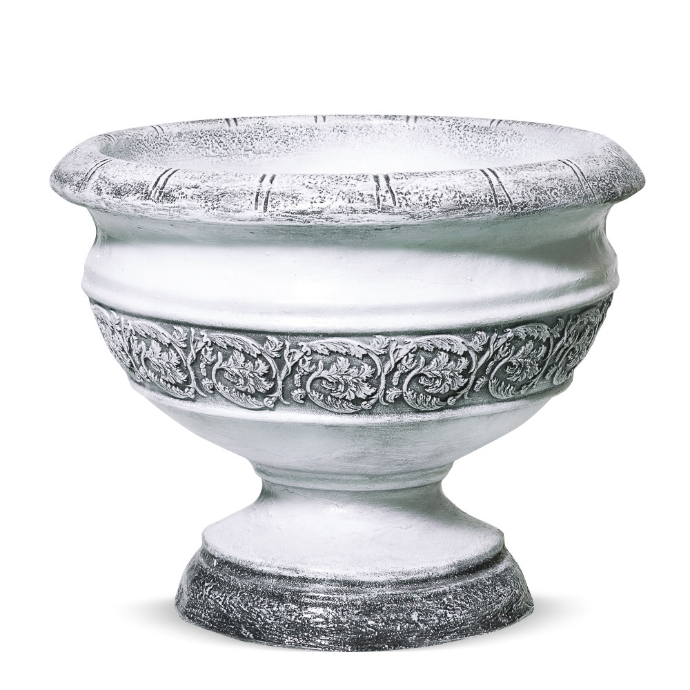 Выполнен из стеклопластика. Имеет декор в виде лепестков. Покраска - под бетон.Подходит для посадки растений. Достаточно только на дно вазонов поместить дренажный слой - специальный слой из гальки, керамзита, который позволит вывести влагу наружу и обеспечит дыхание растению. Преимущества вазонов из стеклопластика: