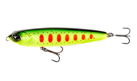 Воблер LJ Pro Series LUI PENCIL 98–очередная новинка от компании Lucky John. Это классический уокер, полигоном ловли для которого являются мелководные и сильно заросшие участки рек, озер и водохранилищ, где применение другой приманки не целесообразно. Главной особенностью данных приманок является их поведение на воде - благодаря форме тела и специально разработанной экспертами Lucky John балансировке LUI PENCIL 98 очень легко скользит по поверхности, совершая плавные движения из стороны в сторону, рисуя на поверхности воды воображаемую змейку. Такое поведение приманки привлекает даже пассивного хищника стоящего в толще воды. Используя систему перемещающихся шаров внутри уокера, компании Lucky John удалось добиться отменных полетных характеристик у приманки. Оснащение мощными качественными тройниками японского производства сократит до минимума возможность схода рыбы.