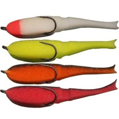 Широкая цветовая палитра позволяет подобрать оптимальный вариант приманки для различных условий ловли. Для увеличения срока службы следует просушивать рыбок после каждой рыбалки.