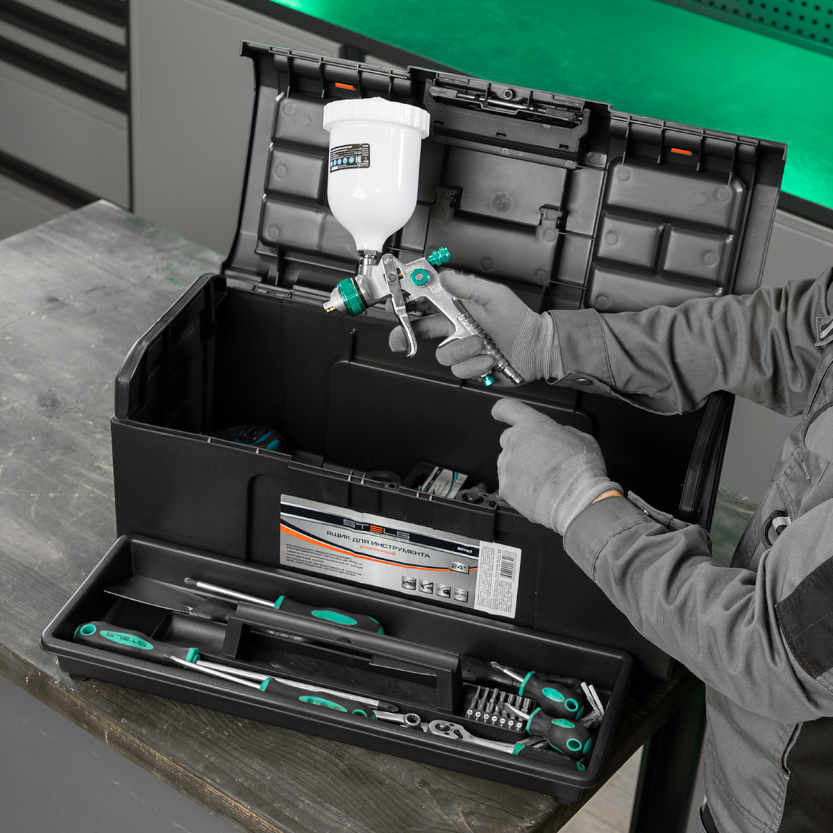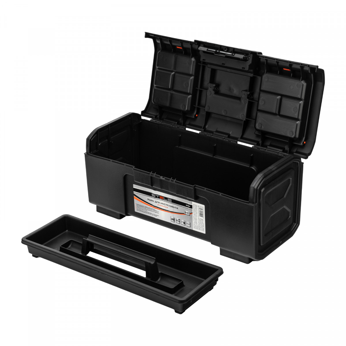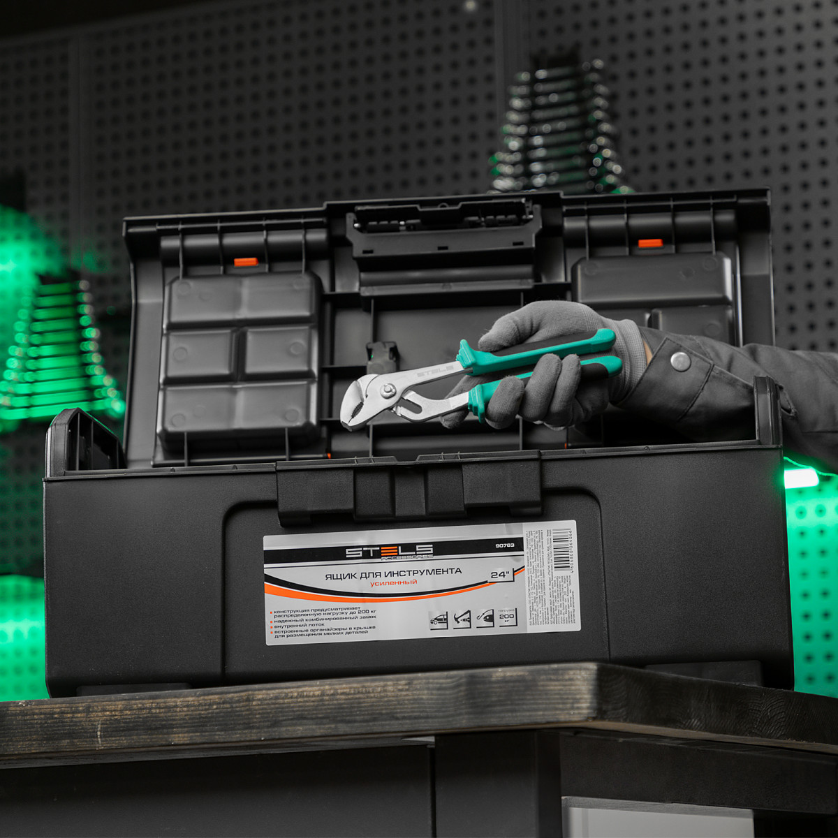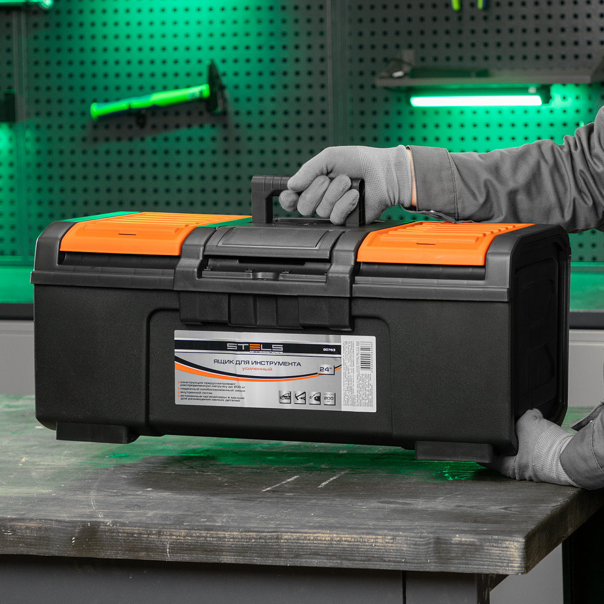 Усиленный ящик для инструментов Stels 90763 длиной 24" используется для хранения и транспортировки ручного и электроинструмента, а также хозяйственных мелочей или рыболовных принадлежностей. Заменяет коробку для инструментов, а также может служить рыболовным ящиком. Пригодится дома, в поездке, а также в гараже или на даче.