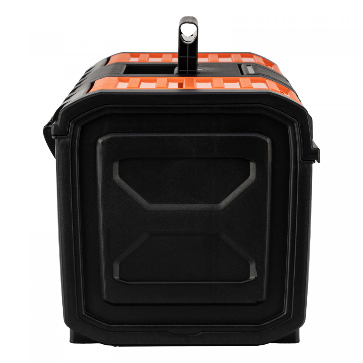• Вместительность — контейнер рассчитан на размещение инструментов общей массой не более 50 кг, поэтому в него можно сложить много предметов.