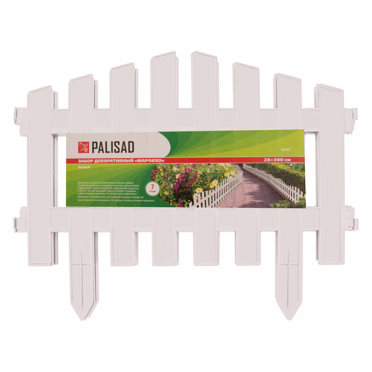 Декоративный забор Palisad «Марокко» 65035 белого цвета, размером 28 х 300 см, позволяет обозначить границы зеленых насаждений и грядок, оградить дорожки и зоны отдыха. В комплект поставки входит 7 секций общей длиной 300 см, которые помогут придать аккуратный и завершенный вид придомовой территории или дачному участку.