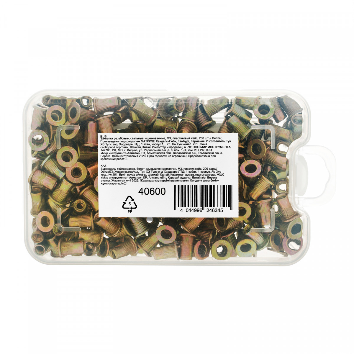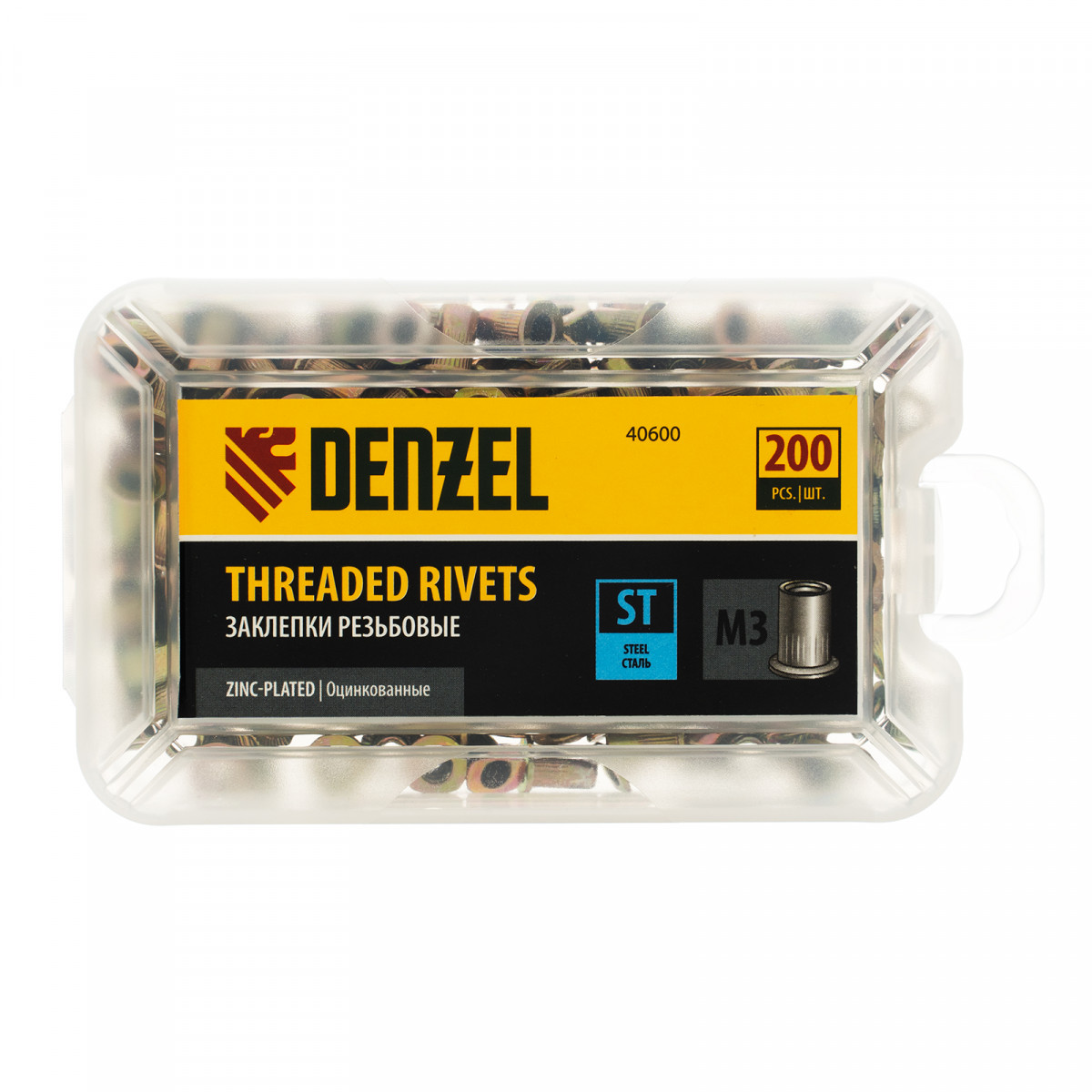 Заклепки резьбовые, стальные, оцинкованные, М3, пластиковый кейс, 200 шт. Denzel