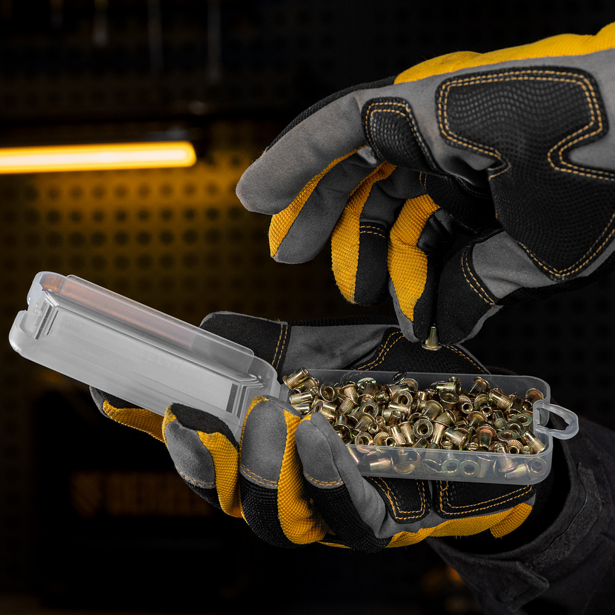 • Удобное хранение и транспортировка — заклепки поставляются в прочном пластиковом кейсе с защелкой.