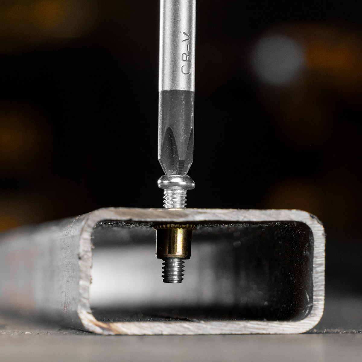 - Удобное хранение и транспортировка — заклепки поставляются в прочном пластиковом кейсе с защелкой.