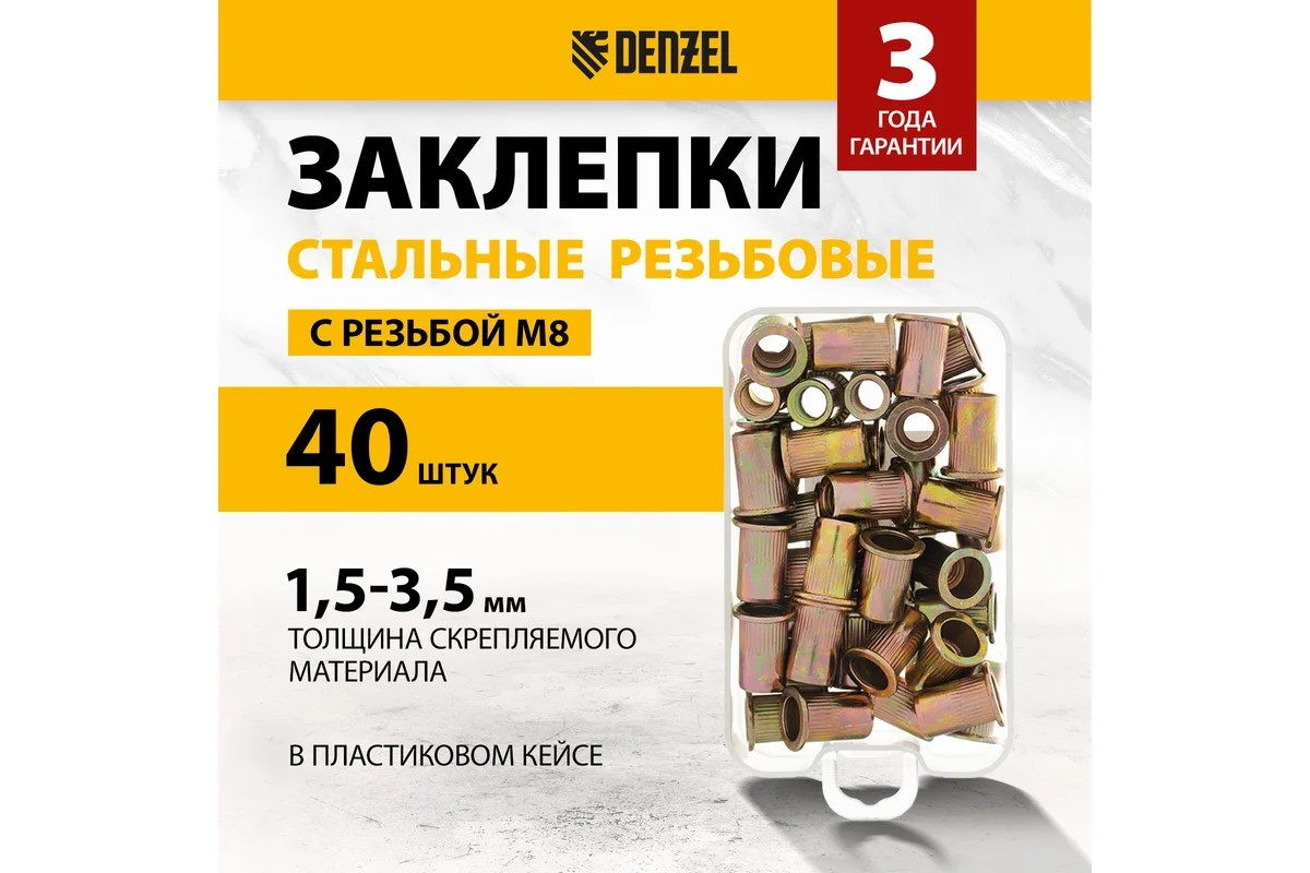 Заклепки резьбовые стальные оцинкованные М8 пластиковый кейс 40 шт Denzel