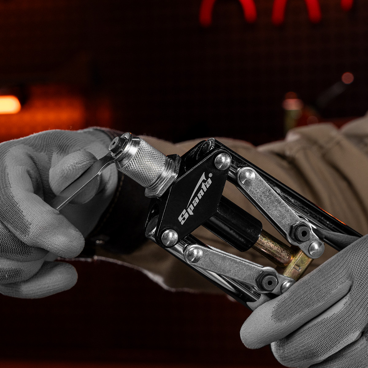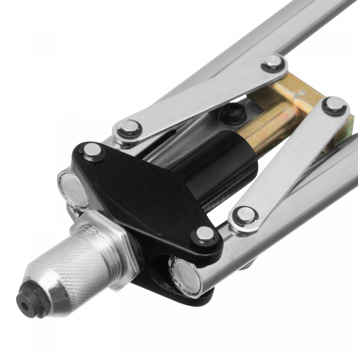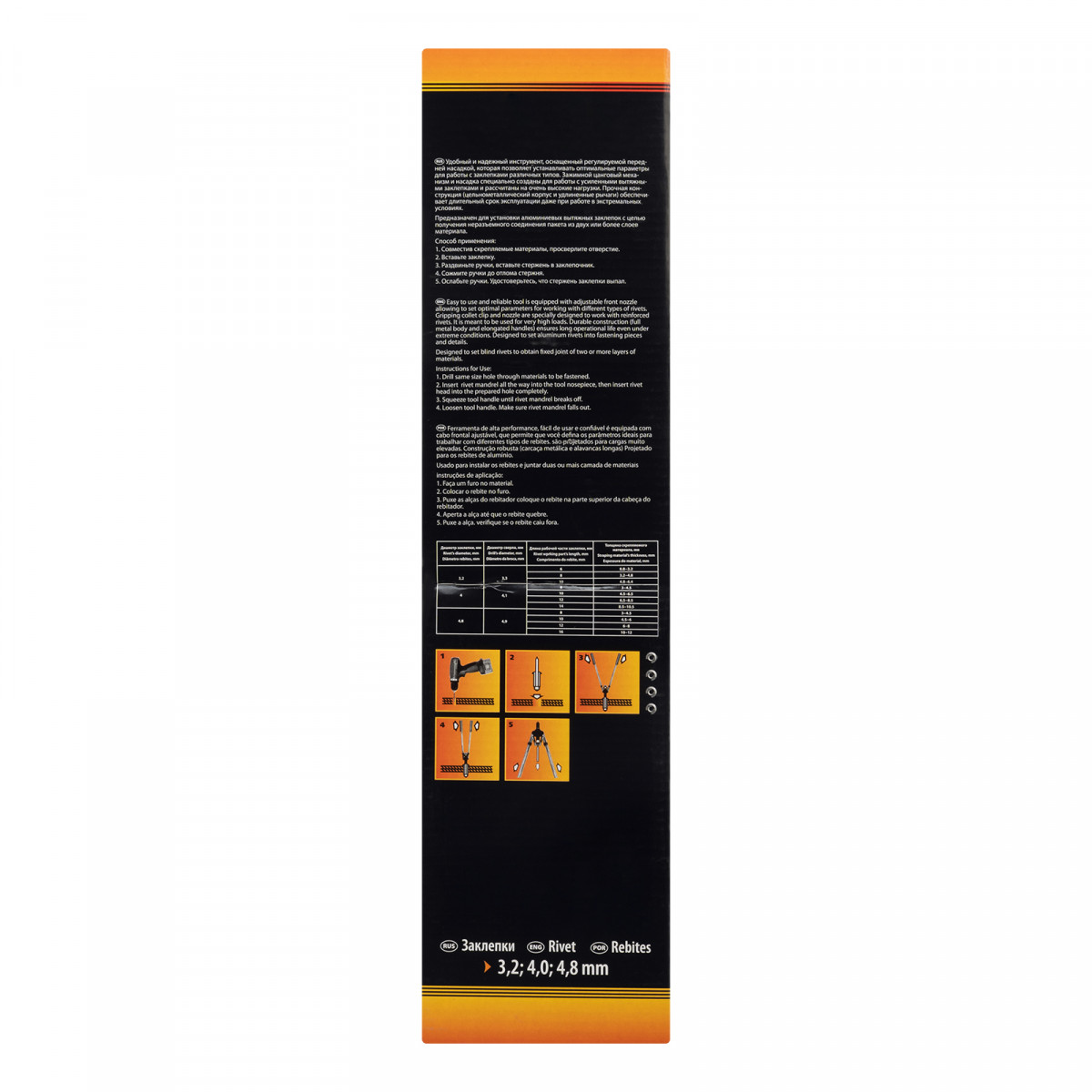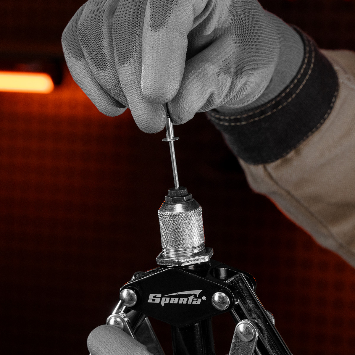 • Цельнометаллический корпус гарантирует долгий срок службы заклепочника.