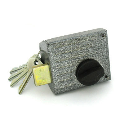 Замок накладной цилиндровый с вертушкой. Предназначен для установки на деревянные двери. Засов прямоугольного сечения размерами 9х28, с максимальным вылетом 25 мм. Удаление ключевого отверстия - 55 мм. Габариты замка - 90,5х78х21 мм. Комплектация - 5 ключей, запорная планка, накладка. Закрывание и открывание замка изнутри производится ручкой, снаружи ключом.