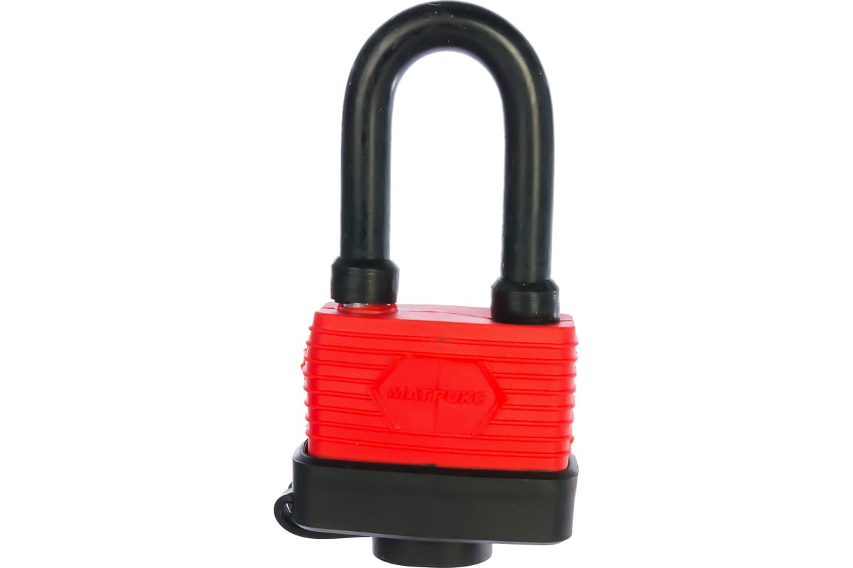 Навесной всепогодный замок MATRIX 50 мм удлиненная дужка 91826 обладает прочным обрезиненным корпусом. Изделие имеет стальные дужку и засов. Герметизация корпуса и дужки замка, минимальный размер зазоров между деталями, специальная крышка на ключевой блок делают конструкцию стойкой к воздействию атмосферных осадков. В комплекте три ключа.