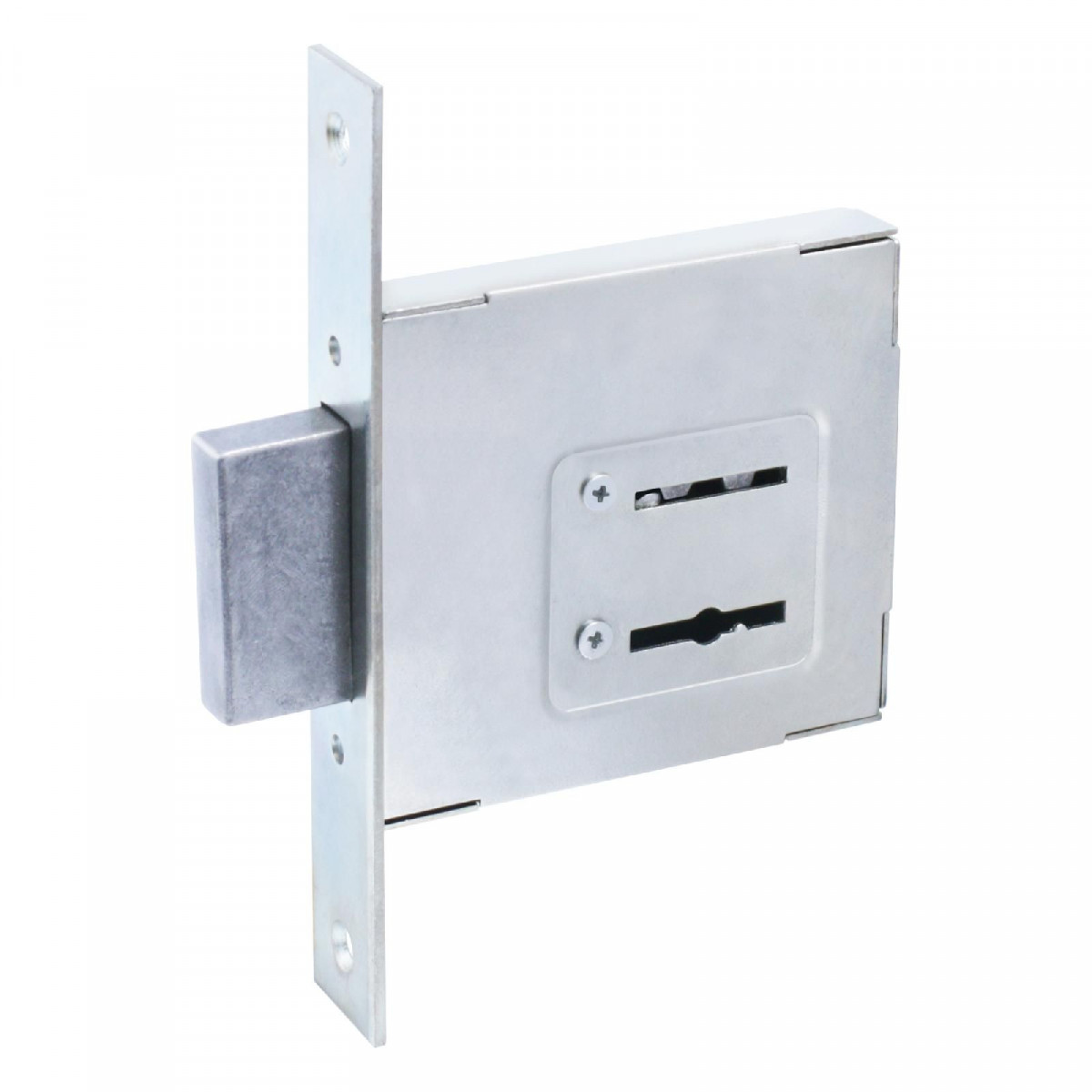Замок врезной сувальдный. Предназначен для установки в деревянные двери толщиной до 60мм. Стальной оцинкованный корпус. Прямоугольный ригель, вылет 20 мм. Удаление ключевого отверстия 55 мм. Габаритный размер корпуса без торцевой планки 77х81 мм. Комплектуется запорной планкой, комплектом накладок и комплектом для крепежа, 5ю ключами.