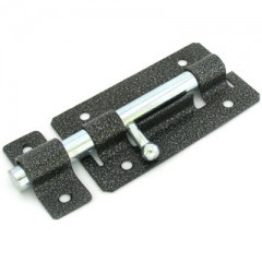 Засов накладной для деревянных и металлических дверей. Материал - сталь, полимерное покрытие. Габариты корпуса - 115х67 мм, 4 крепежных отверстия. Цилиндрический ригель диаметром 13 мм с вылетом 40 мм. В комплекте ответная планка 65х25 мм.