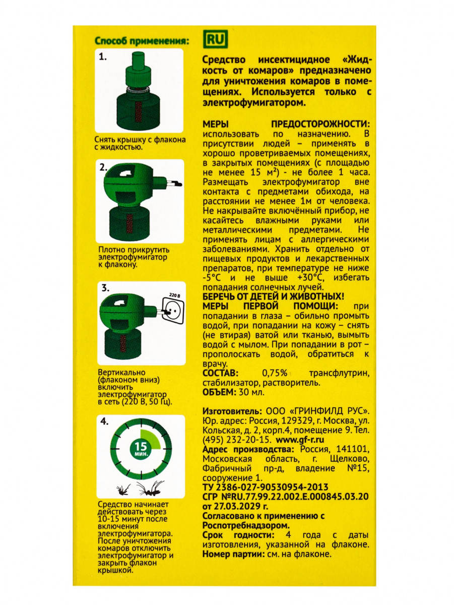 Предназначено для борьбы с комарами, москитами и прочими летающими насекомыми, проникшими в помещение. Прост и удобен в использовании. Большой объем позволит защитить дом на длительный период.